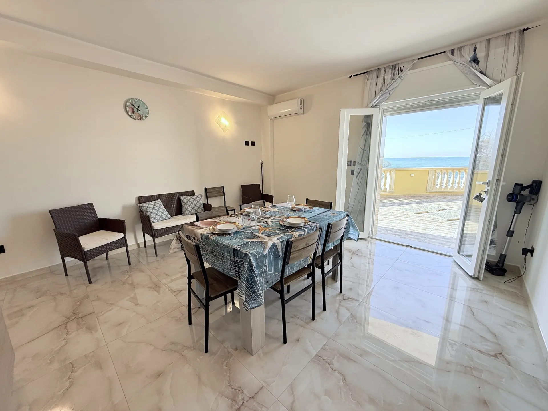 Vicinissimo al mare , appartamento completamente rinnovato, molto spazioso e confortevole. Dotato di aria condizionata , lavatrice , lavastoviglie , forno classico e a microonde. Diversi balconi e ampia terrazza con tavolo. Due bagni più doccia esterna con acqua calda.